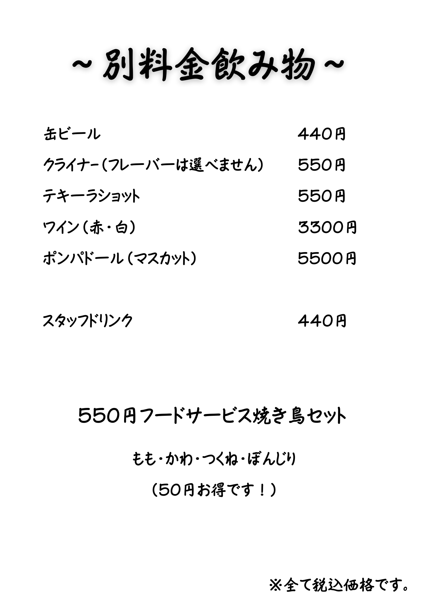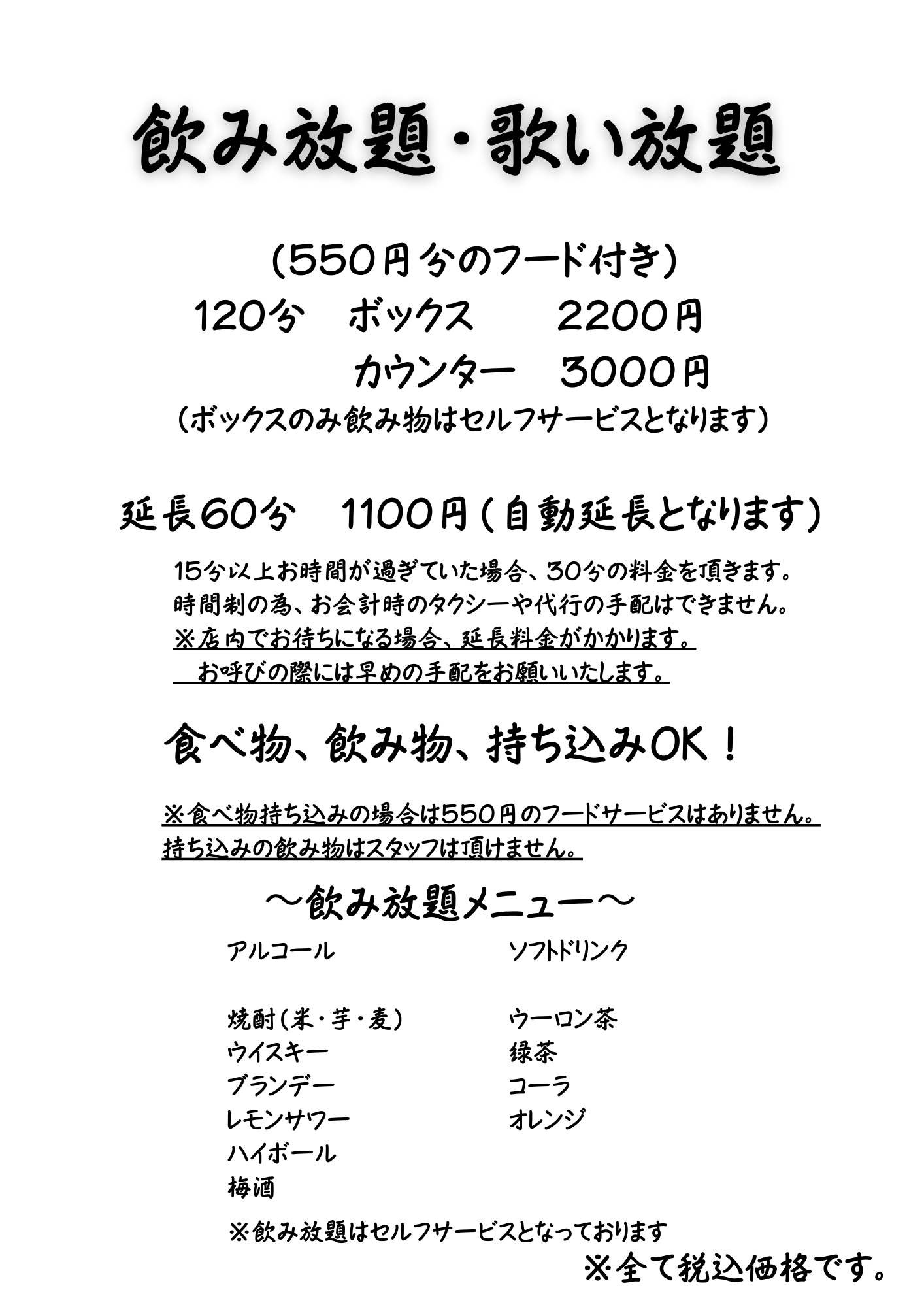 | 焼酎(米・芋・麦)※水・ソーダ割り可 |